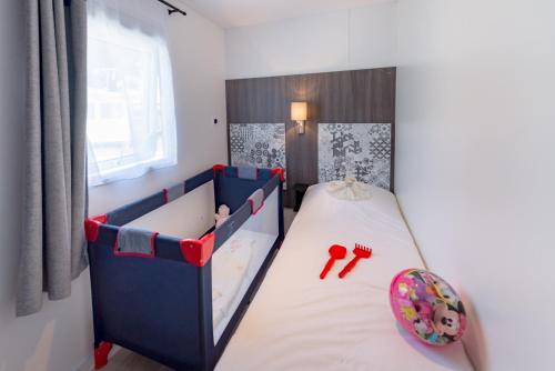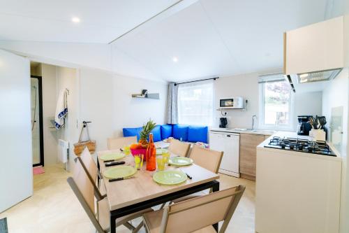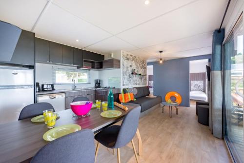 ![]() ![]() ![]() ![]() This mobile home comprises 1 living room, 2 separate bedrooms and 1 bathroom with a shower. The fully equipped kitchen features a stovetop, a refrigerator, a dishwasher and kitchenware. This mobile home has a coffee machine, a seating area, a TV and an outdoor dining area. The unit offers 3 beds. |