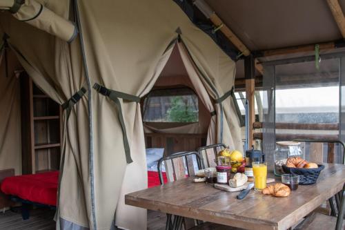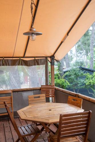 ![]() ![]() ![]() ![]() ![]() Affichant un style nature et pouvant accueillir jusqu'à 5 personnes, l’Écolodge Safari de 35 m², parfaitement intégré au sein de la belle pinède, est idéal pour un séjour en famille ou entre amis. Le logement dispose de 2 chambres avec oreillers, alèses et couettes, d'une cuisine entièrement équipée, d'un coin salon avec canapé d'angle, ainsi que d'une terrasse en bois couverte avec table et chaises. Veuillez noter ces informations importantes : L’Écolodge Safari ne dispose pas de sanitaires. Le bloc sanitaire est situé à moins de 50 mètres. Cet hébergement ne dispose pas de la climatisation. Des radiateurs et des ventilateurs sont disponibles selon la saison. Le tarif ne comprend pas : la télévision, les draps, les serviettes et les produits d'entretien. |