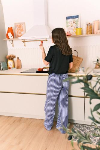 ![]() ![]() ![]() ![]() This apartment is comprised of 1 living room, 1 separate bedroom and 1 bathroom with a shower and free toiletries. The well-equipped kitchen features a stovetop, a refrigerator, a dishwasher and kitchenware. The air-conditioned apartment offers a flat-screen TV with streaming services, a washing machine, soundproof walls, a tea and coffee maker as well as city views. The unit offers 2 beds. |