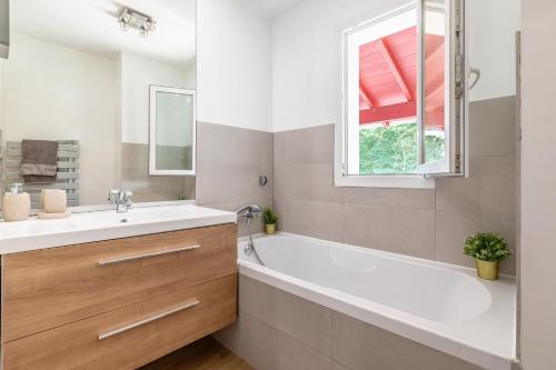 L’hébergement Villa Basoa - Villa avec piscine à 10 min plages vous accueille à respectivement 4,5 km et 20 km de ces lieux d’intérêt : Gare de Biarritz La Négresse et Église Saint-Jean-Baptiste. Il comprend une connexion Wi-Fi gratuite et une piscine extérieure. Cette maison de vacances comprend une piscine privée, un jardin et un parking privé gratuit. Disposant d’une terrasse et offrant une vue sur le jardin, cette maison de vacances possède 3 chambres, un salon, une télévision, une cuisine équipée avec un réfrigérateur et un lave-vaisselle, ainsi que 2 salles de bains avec une douche. Des serviettes et du linge de lit sont à votre disposition. Vous séjournerez à respectivement 21 km et 34 km de ces lieux d’intérêt : Gare de Saint-Jean-de-Luz et Gare d'Hendaye. L'aéroport le plus proche (Aéroport de Biarritz-Pays basque) est à 5 km. |