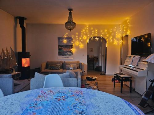 Offrant une vue sur le jardin, l’hébergement Deux maisons reunis par le jardin et sa cabine de plage, à 8min à pieds des plages et de l'océan se situe à Batz-sur-Mer, à respectivement 7,1 km et 7,2 km de ces lieux d’intérêt : Palais des congrès Atlantia de La Baule et Casino Barrière de La Baule. Cet hébergement est installé à 700 mètres de : Plage de Saint-Michel. Il possède un jardin et un parking privé gratuit. Offrant une vue sur la ville, cette maison de vacances comprend du parquet, 5 chambres, ainsi que 4 salles de bains avec une douche, une baignoire et un sèche-cheveux. La cuisine est pourvue d’un réfrigérateur, d’un lave-vaisselle et d’un four. Elle est également dotée d’une machine à café et d’une bouilloire. Vous séjournerez à respectivement 10 km et 26 km de ces lieux d’intérêt : Gare de La Baule-Escoublac et Gare de Saint-Nazaire. L'aéroport le plus proche (Aéroport de Montoir) est à 30 km.  |