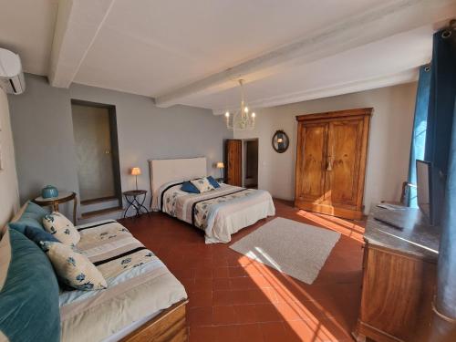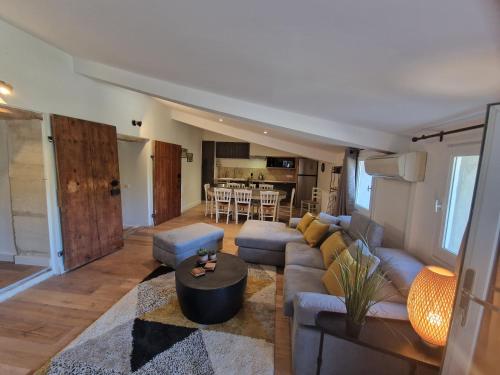 ![]() ![]() ![]() ![]() ![]() ![]() ![]() ![]() ![]() ![]() Cet appartement de 69 m² entièrement rénové en 2023 est situé à l'arrière du mas du XVIIe siècle et bénéficie d'une magnifique vue sur le château des Baux-de-Provence. L’hébergement comporte 3 chambres climatisées, chacune avec sa salle de bains et ses toilettes : - une chambre avec un lit double de 160 cm - une chambre avec un lit double de 160 cm et une banquette avec 2 lits gigognes - une chambre avec un lit double de 180 cm pouvant être séparé en 2 lits simples et une banquette avec 2 lits gigognes Ce logement dispose d'un grand salon-salle à manger pouvant accueillir jusqu'à 10 personnes. La cuisine entièrement équipée inclut un réfrigérateur avec congélateur, un four, un micro-ondes, la vaisselle et tous les ustensiles nécessaires, ainsi qu’un lave-linge. Une télévision et une connexion Wi-Fi sont disponibles. Le parking est gratuit. Donnant sur le château des Baux-de-Provence, la terrasse privée est dotée d'un barbecue, d'une table pour 10 personnes et de chaises longues. |