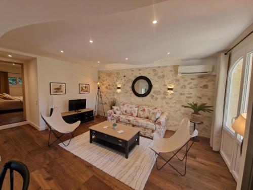 ![]() ![]() ![]() ![]() ![]() ![]() Situé dans le mas historique du XVIIe siècle, cet appartement de 90 m² allie charme provençal traditionnel et confort absolu. Au rez-de-chaussée, vous trouverez une salle à manger de 24 m² présentant des pierres apparentes, un coin salon et une cuisine entièrement équipée avec un réfrigérateur-congélateur, un four, un micro-ondes, un lave-vaisselle et tous les ustensiles nécessaires. Au 1er étage, vous trouverez 3 chambres spacieuses et climatisées, chacune avec sa propre salle de bains et des toilettes : - une 1ère chambre très lumineuse de 25 m² avec un lit double de 180 cm de large qui peut être séparé en 2 lits de 90 cm de large ; - une 2e chambre très lumineuse de 20 m² avec un lit de 160 cm de large, un canapé-lit et une salle de bains pourvue d’une baignoire ; - une 3e chambre de 15 m² avec des poutres apparentes et un lit de 160 cm de large. Chaque chambre est équipée d'une télévision. La terrasse privée de 50 m² possède un grande table en pierre, un platane, des transats et un barbecue. Le barbecue est privé. Une connexion Wi-Fi et un parking sont disponibles gratuitement. |