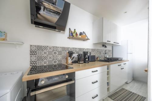 ![]() ![]() This apartment consists of 1 living room, 1 separate bedroom and 1 bathroom with a shower and a hairdryer. The well-fitted kitchen features a stovetop, a refrigerator, kitchenware and an oven. The apartment has parquet floors, a seating area with a TV, a washing machine, a coffee machine as well as city views. The unit offers 1 bed. |