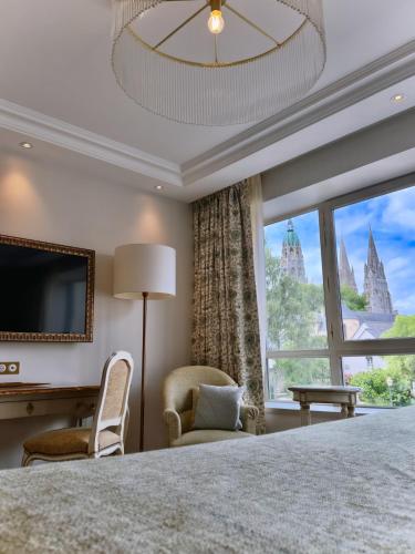 La Villa Lara Hotel est un petit boutique hôtel de luxe situé dans le centre historique de Bayeux, en face de la cathédrale du XIe siècle et à seulement 2 minutes à pied de la Tapisserie de Bayeux. Luxueux, les hébergements sont pourvus d'un mobilier d'époque, d'une télévision à écran plat et d'un minibar. Ils sont décorés suivant une palette de couleurs neutres personnalisées, avec des étoffes imprimées. Chacun d'entre eux comporte une salle de bains privative avec un sol en marbre, des peignoirs et des chaussons. Un petit-déjeuner buffet, composé de pâtisseries fraîches et de café, est servi chaque matin dans la salle à manger. Vous pourrez également vous détendre au bar de style empire avant de dîner dans les restaurants voisins. Sur place, un parking privé est disponible gratuitement. La plage d'Omaha se trouve à 10 km de l'hôtel. Vous pourrez facilement accéder à l'établissement depuis la gare SNCF de Bayeux, installée à moins de 1 km. La connexion Wi-Fi est gratuite dans l'ensemble des locaux. |