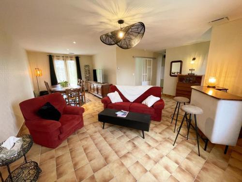 Offrant une vue sur le jardin, l’hébergement Gîte avec SPA et sauna dans le Val de Loire - FR-1-381-607 comprend un jardin et une terrasse, à environ 34 km de ce lieu d’intérêt : Gare d'Amboise. Cet hébergement avec climatisation est installé à 25 km de : Demeure de Ronsard. Vous pourrez profiter d’une connexion Wi-Fi gratuite et d’un parking privé disponible sur place. Cette maison de vacances comporte 3 chambres, une cuisine avec un réfrigérateur et un lave-vaisselle, ainsi que 2 salles de bains avec une douche, un sèche-cheveux et un lave-linge. Une télévision est à votre disposition. L’établissement Gîte avec SPA et sauna dans le Val de Loire - FR-1-381-607 dispose d’un bain à remous. Vous séjournerez à respectivement 35 km et 35 km de ces lieux d’intérêt : Palais des congrès de Tours et Gare de Tours. L'aéroport le plus proche (Aéroport de Tours Val de Loire) est à 20 km. |