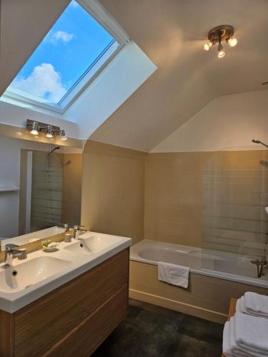 Situé à Belz (Bretagne), l’établissement Domaine de Keryargon, Chambres d'hôtes comprend une connexion Wi-Fi gratuite et un parking privé gratuit. L’établissement dispose d’une télévision à écran plat, ainsi que d'une salle de bains privative comprenant des articles de toilette gratuits, un sèche-cheveux et une douche. Cet établissement dispose d’une terrasse bien exposée. Lors de votre séjour, vous pourrez nager dans la piscine extérieure, pratiquer la randonnée et la pêche, ou vous détendre dans le jardin. Vous séjournerez à respectivement 8,4 km et 23 km de ces lieux d’intérêt : Gare SNCF de Plouharnel et Gare de Quiberon. L'aéroport le plus proche (Aéroport de Lorient Bretagne Sud) est à 43 km. |