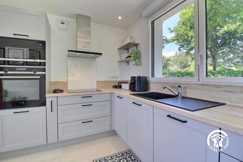 Situé à Belz, l’hébergement Ty bayon offre une vue sur la mer. Il possède un jardin et une connexion Wi-Fi gratuite. Cette maison de vacances 4 étoiles est à 11 km de : Gare SNCF de Plouharnel. Cette maison de vacances comprend 3 chambres, une télévision à écran plat avec les chaînes du satellite, une cuisine équipée avec un réfrigérateur et un lave-vaisselle, un lave-linge, ainsi que 2 salles de bains avec une douche. Vous séjournerez à respectivement 23 km et 24 km de ces lieux d’intérêt : Lorient Bretagne Sud Expo-Congrès et Gare de Lorient. L'aéroport le plus proche (Aéroport de Lorient Bretagne Sud) est à 34 km. |