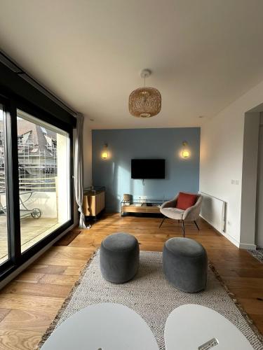 Proposant un jardin et offrant une vue sur la mer, l’hébergement Maison proche plage vue mer se trouve à Benerville-sur-Mer, à respectivement 400 mètres et 2,3 km de ces lieux d’intérêt : East Beach et Hippodrome de Deauville. Cet hébergement en bord de mer met à votre disposition une terrasse, un parking privé gratuit et une connexion Wi-Fi gratuite. Cette maison de vacances compte 4 chambres, une cuisine avec un réfrigérateur et un lave-vaisselle, une télévision à écran plat, un coin salon, ainsi que 3 salles de bains comportant une douche. Des serviettes et du linge de lit sont mis à votre disposition. Vous séjournerez à respectivement 3,6 km et 4 km de ces lieux d’intérêt : Casino de Deauville et Promenade des Planches. L'aéroport le plus proche (Aéroport de Deauville - Normandie) est à 8 km. |