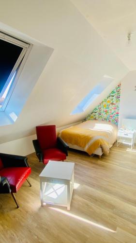 L’hébergement Le Hameau, confortable logement avec accès direct à la plage se trouve à Bernières-sur-Mer, à seulement 1,1 km de ce lieu d’intérêt : Plage est. Il met à votre disposition une connexion Wi-Fi gratuite et offre une vue sur la mer. Cet appartement est à respectivement 4,7 km et 5 km de : Juno Beach et Centre Juno Beach. Cet appartement se compose de 2 chambres, d'un salon, d'une cuisine entièrement équipée avec un réfrigérateur et une machine à café, ainsi que de 2 salles de bains avec une douche. Une télévision à écran plat est disponible. Vous séjournerez à respectivement 16 km et 17 km de ces lieux d’intérêt : Cinéma Arromanches 360 et Musée du Débarquement. L'aéroport le plus proche (Aéroport de Caen-Carpiquet) est à 21 km. |
