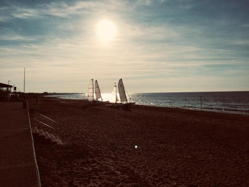 L’hébergement en bord de mer Les Volets Bleus-Charmante maison entièrement équipée face à la mer pour 2 à 6 personnes se trouve à Bernières-sur-Mer, à seulement 600 mètres de ce lieu d’intérêt : Plage est. Il propose une plage privée, un bar, des équipements de sports nautiques et une connexion Wi-Fi gratuite. Cette maison de vacances comprend un parking privé gratuit et se trouve dans une région où vous pourrez pratiquer des activités telles que la randonnée et le canoë-kayak. Disposant d’une terrasse et offrant une vue sur la mer, cette maison de vacances comprend 3 chambres, un salon, une télévision à écran plat par satellite, une cuisine équipée, ainsi que 2 salles de bains avec une douche et une baignoire. Des serviettes et du linge de lit sont disponibles. Cet établissement dispose d’un barbecue. Un casino et une aire de jeux pour enfants sont disponibles sur place. Vous séjournerez à respectivement 4,3 km et 4,6 km de ces lieux d’intérêt : Juno Beach et Centre Juno Beach. L'aéroport le plus proche (Aéroport de Caen-Carpiquet) est à 21 km. |