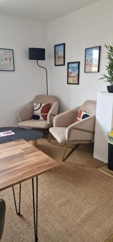 Appartement 1 Chambre    The apartment has 1 bedroom and 1 bathroom with a shower and free toiletries. The fully equipped kitchenette features a stovetop, a refrigerator, kitchenware and an oven. The apartment features a tea and coffee maker, a dining area, a wardrobe, a flat-screen TV, as well as city views. The unit has 1 bed. | ||