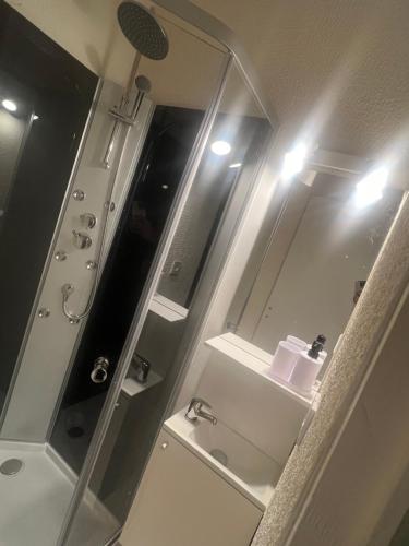 Chambre Quadruple en Duplex The quadruple room offers air conditioning, a private entrance, as well as a private bathroom featuring a shower and slippers. The quadruple room features a flat-screen TV, a tiled floor, a carpeted floor and heating. The unit offers 3 beds.