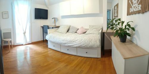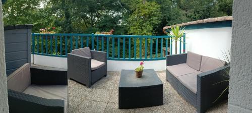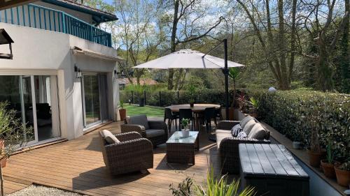 L’hébergement Jolie maison familiale proche lac et océan se situe à Biarritz, à respectivement 2,1 km et 800 mètres de ces lieux d’intérêt : Plage de Milady et Gare de Biarritz La Négresse. Il propose un salon commun et la climatisation. Cette maison de vacances comprend une piscine privée, un jardin, un barbecue, un parking privé gratuit et une connexion Wi-Fi gratuite. Cette maison de vacances comporte 4 chambres, 3 salles de bains, du linge de lit, des serviettes, une télévision à écran plat, un coin repas, une cuisine entièrement équipée et une terrasse offrant une vue sur la piscine. Cet établissement propose une piscine extérieure. Vous séjournerez à respectivement 14 km et 15 km de ces lieux d’intérêt : Gare de Saint-Jean-de-Luz et Église Saint-Jean-Baptiste. L'aéroport le plus proche (Aéroport de Biarritz-Pays basque) est à 2 km. |