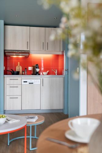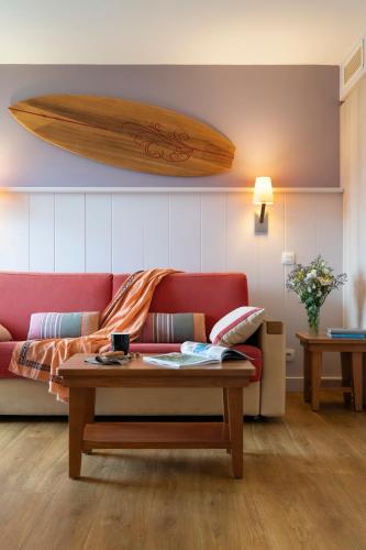 L’établissement Pierre & Vacances Premium Haguna se trouve dans le centre-ville de Biarritz, à seulement 300 mètres de la plage. Cette résidence propose de spacieux appartements indépendants. Moyennant des frais supplémentaires, vous pourrez accéder à un centre de bien-être pourvu d’un sauna, d’un hammam et d’un solarium. Entièrement meublés, les studios et les appartements de la résidence Haguna disposent d’une télévision, d’une pièce à vivre et d’une salle de bains privative. Les cuisines équipées comprennent un lave-vaisselle, un réfrigérateur et un micro-ondes. Vous pourrez opter pour la formule Confort, que vous devrez commander en ligne avant l’arrivée. Cette formule comprend les lits faits à l’arrivée, ainsi que le changement du linge de toilette et le ménage en milieu de séjour. L’établissement Pierre & Vacances Premium Haguna constitue un point de départ idéal pour explorer la côte basque. Bayonne se trouve à seulement 10 minutes en voiture, tandis que Saint-Sébastien est accessible en 35 minutes de route. Des livres et des jeux de société sont mis gratuitement à votre disposition. Vous pourrez commander des produits de boulangerie à la réception la veille. Ils vous seront servis sous forme de buffet. Vous trouverez la liste des produits de boulangerie dans votre hébergement et à la réception. Ce service entraînera des frais supplémentaires. L’établissement est détenteur du label Clef Verte.  |
