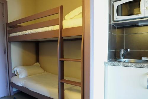 ![]() ![]() ![]() ![]() Cette chambre familiale avec mezzanine dispose de 2 espaces. Le logement comprend un spacieux lit double en bas, un bureau et un grand placard ainsi qu’une salle de bains privative pourvue d’un sèche-cheveux. Vous pourrez profiter d’une télévision à écran plat, d’un téléphone ainsi que d’une connexion Wi-Fi. La mezzanine est accessible par un escalier escamotable qui n’est pas recommandé pour les enfants de moins de 6 ans. Elle est pourvue de 2 lits simples et d’une fenêtre de toit. Cette chambre peut accueillir jusqu’à 4 personnes. |