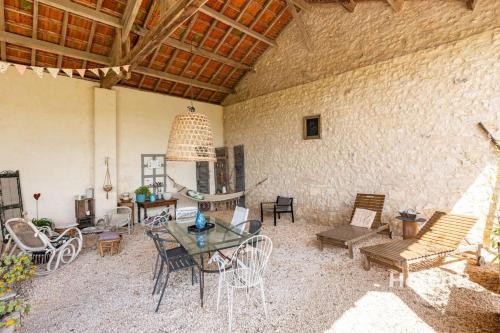 Proposant un jardin, l’hébergement Douce Campagne Cottage Private Spa vous accueille à Blanc, à respectivement 30 km, 23 km et 32 km de ces lieux d’intérêt : Gare de Bergerac, Golf du Château Les Merles et Gouffre de Proumeyssac. Cet hébergement met à votre disposition une terrasse, une table de ping-pong, un parking privé gratuit et une connexion Wi-Fi gratuite. Cette maison de vacances avec climatisation se compose de 2 chambres, d'un salon, d'une cuisine entièrement équipée avec un réfrigérateur et une machine à café, ainsi que de 1 salle de bains avec une douche et un bain à remous. Une télévision à écran plat avec les chaînes du satellite est à votre disposition. L’établissement Douce Campagne Cottage Private Spa dispose d’un bain à remous. Vous pourrez profiter d'une aire de jeux pour enfants. Vous séjournerez à respectivement 34 km et 35 km de ces lieux d’intérêt : Golf de Lolivarie et Golf de Villeneuve-sur-Lot. L'aéroport le plus proche (Aéroport Bergerac Dordogne Périgord) est à 23 km. |