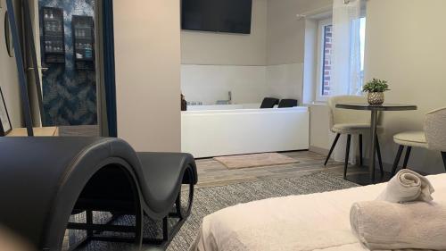 ![]() ![]() Guests will have a special experience as this holiday home offers a hot tub, a spa bath and a fireplace. In the fully equipped kitchen, guests will find a stovetop, a refrigerator, an oven and a microwave. The holiday home provides a flat-screen TV with streaming services, a private entrance, soundproof walls, a tea and coffee maker as well as garden views. The unit offers 1 bed. |