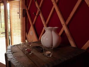 L’hébergement Yourtes en Terrasse se situe à Bonneval, à seulement 43 km de ce lieu d’intérêt : Centre Pierre Cardinal. Il possède un jardin, un barbecue et une réception ouverte 24h/24. Cette tente de luxe possède une terrasse et se trouve dans une région où vous pourrez pratiquer des activités telles que la randonnée, le vélo et le ping-pong. L’hébergement possède une kitchenette équipée d’un réfrigérateur, d’un four et d’une plaque de cuisson. Il comprend également une douche, des articles de toilette gratuits et un sèche-cheveux. Un petit-déjeuner continental est servi sur place. Vous pourrez profiter d’une aire de jeux pour enfants sur place. Vous séjournerez à respectivement 43 km et 42 km de ces lieux d’intérêt : Cathédrale Notre-Dame-de-l'Annonciation du Puy-en-Velay et Eglise Saint-Michel d'Aiguilhe. L'aéroport le plus proche (Aéroport Le Puy-en-Velay - Loudes) est à 33 km. |