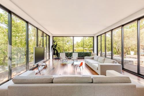 Situé à Bonnieux, l’hébergement Villa Bim offre une vue sur la montagne. Il propose une piscine extérieure ouverte en saison, un jardin, un salon commun et une connexion Wi-Fi gratuite. Cette villa comprend un parking privé gratuit et se trouve dans une région où vous pourrez pratiquer des activités telles que la randonnée, la pêche et le ping-pong. Cette villa avec climatisation se compose de 5 chambres, d'un salon, d'une cuisine entièrement équipée avec un réfrigérateur et une machine à café, ainsi que de 4 salles de bains avec une douche et des articles de toilette gratuits. Une télévision à écran plat avec les chaînes du satellite, un lecteur Blu-ray, un lecteur DVD et un lecteur CD sont disponibles. Vous pourrez profiter d’une terrasse sur place et pratiquer le vélo à proximité. Vous séjournerez à respectivement 38 km et 47 km de ces lieux d’intérêt : Parc des expositions d'Avignon et Gare d'Avignon-Centre. L'aéroport le plus proche (Aéroport de Marseille Provence) est à 80 km. |