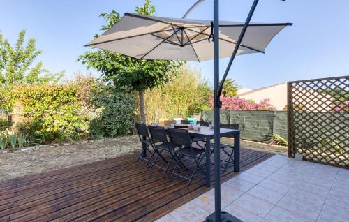 L’hébergement 3 étoiles Harmante Maison Proche Plage se situe à Bourcefranc, dans la région Poitou-Charentes. Il possède une connexion Wi-Fi gratuite. Cette maison de vacances est à respectivement 46 km et 23 km de : Gare de Saintes et Zoo de La Palmyre. Cette maison de vacances comporte 3 chambres, une télévision, un coin repas, un salon, ainsi qu’une cuisine avec un réfrigérateur. Vous séjournerez à respectivement 24 km et 30 km de ces lieux d’intérêt : Fort Boyard et Royan Golf. L'aéroport le plus proche (Aéroport de La Rochelle - Île de Ré) est à 64 km. |