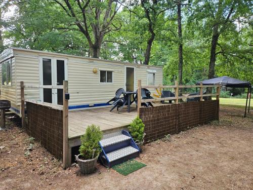 ![]() ![]() ![]() ![]() Featuring 2 bedrooms, this mobile home offers 1 bathroom with a shower, a seating area and terrace where you can relax. Guests will find a stovetop, a refrigerator, kitchenware and an oven in the well-fitted kitchen. The mobile home also provides guests with a barbecue. The mobile home provides a private entrance, soundproof walls, a tea and coffee maker, a dining area and a flat-screen TV. The unit has 3 beds. |