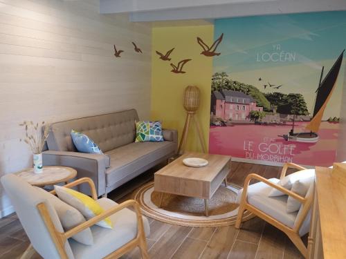 L’hébergement Gîte Marguerite - Maison avec jardin de 3500m2 se trouve à Brandivy, à respectivement 21 km, 22 km et 29 km de ces lieux d’intérêt : Musée des Beaux Arts (La Cohue), Gare de Vannes et Gare SNCF de Plouharnel. Il possède une connexion Wi-Fi gratuite. Cet hébergement est installé à 21 km de : Port de Plaisance de Vannes. Il propose un jardin et un parking privé gratuit. Disposant d’une terrasse et offrant une vue sur le jardin, cette maison de vacances comprend 2 chambres, un salon, une télévision, une cuisine équipée avec un réfrigérateur et un lave-vaisselle, ainsi que 1 salle de bains avec une douche. Vous séjournerez à respectivement 39 km et 42 km de ces lieux d’intérêt : Lorient Bretagne Sud Expo-Congrès et Gare de Lorient. L'aéroport le plus proche (Aéroport de Lorient Bretagne Sud) est à 49 km. |