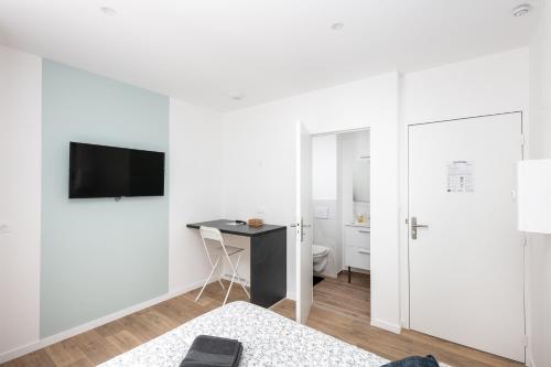 Chambre Simple avec Salle de Bains Privative   This single room features a private bathroom and tumble dryer. The single room's kitchen is available for cooking and storing food. Featuring a terrace with garden views, this single room also provides a washing machine and a flat-screen TV. The unit offers 1 bed. | ||