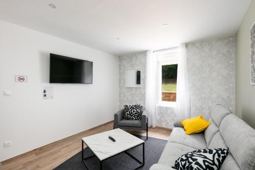 Chambre Simple avec Salle de Bains Privative   This single room provides a private bathroom, and heating. The single room's kitchen is available for cooking and storing food. Boasting a terrace with garden views, this single room also features a washing machine and a flat-screen TV. The unit has 1 bed. | ||