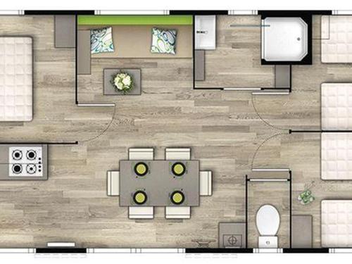 ![]() ![]() ![]() ![]() ![]() ![]() ![]() Featuring a private entrance, this mobile home comprises 3 bedrooms, 1 bathroom and a kitchen. Guests can make meals in the kitchen that is equipped with a refrigerator, kitchenware and a microwave. Boasting a terrace, this mobile home also provides a coffee machine, a dining area and a TV. The unit offers 5 beds. |
