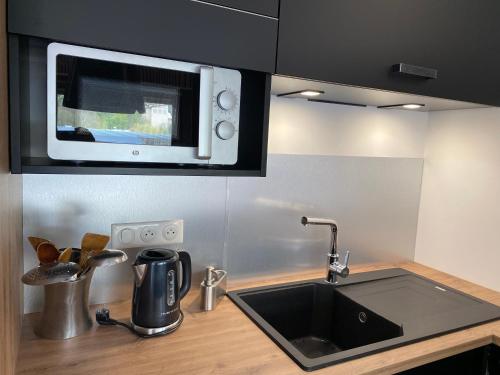 Appartement 1 Chambre      Featuring a private entrance, this apartment is comprised of 1 living room, 1 separate bedroom and 1 bathroom with a shower and a hairdryer. Guests can make meals in the kitchen that comes with a stovetop, a refrigerator, kitchenware and a microwave. The apartment features tiled floors, a seating area with a flat-screen TV, a washing machine, a tea and coffee maker as well as mountain views. The unit offers 2 beds. | ||