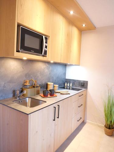 ![]() ![]() Vous pourrez préparer vos repas dans la kitchenette équipée de plaques de cuisson, d’un réfrigérateur, d’un four et d’ustensiles de cuisine. Ce studio dispose d'un plateau/bouilloire, d'un coin repas et d'un balcon avec vue sur la montagne. La salle de bains privative est pourvue d’une douche. Ce logement comporte 2 lits. |