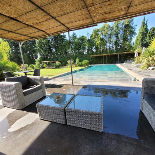 Situé à Cabannes, l’hébergement Le Mas des Mirabelles offre une vue sur le jardin. Il possède une piscine extérieure ouverte en saison, un jardin, une terrasse et une connexion Wi-Fi gratuite. Doté d’un parking privé gratuit, cet hébergement est installé à respectivement 9,4 km et 19 km de : Parc des expositions d'Avignon et Gare d'Avignon-Centre. Cet hébergement à la campagne avec climatisation se compose de 2 chambres, d'un salon, d'une cuisine entièrement équipée avec un réfrigérateur et une machine à café, ainsi que de 2 salles de bains avec une douche et un bain à remous. Des serviettes et du linge de lit sont à disposition. L’établissement dispose d’un sauna et d’un bain à remous. Vous pourrez bénéficier d’un barbecue sur place. Vous séjournerez à respectivement 19 km et 20 km de ces lieux d’intérêt : Gare TGV d'Avignon et Palais des Papes d'Avignon. |