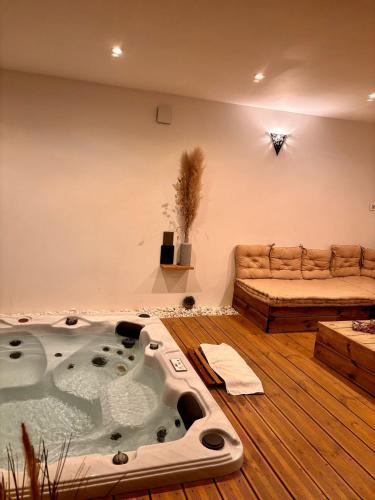 ![]() ![]() ![]() ![]() ![]() This luxurious holiday home provides an infinity pool, a hot tub and a spa bath. Boasting a private entrance, this air-conditioned holiday home comes with 1 living room, 2 separate bedrooms and 2 bathrooms with a walk-in shower and a hairdryer. Guests will find a stovetop, a refrigerator, a dishwasher and kitchenware in the fully equipped kitchen. The holiday home also includes a barbecue. Featuring a terrace with garden views, this holiday home also features a washing machine and a flat-screen TV. The unit has 3 beds. |