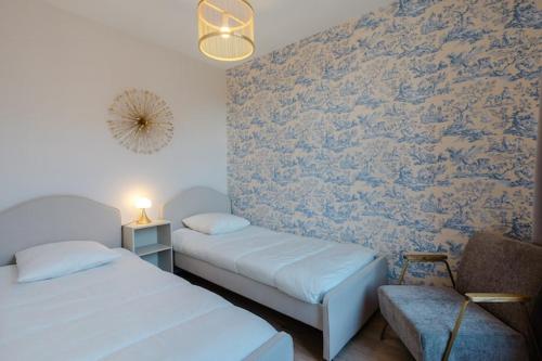 Appartement 2 Chambres      The apartment features 2 bedrooms, 1 bathroom with a shower and a kitchen. Guests can make meals in the kitchen that comes with a stovetop, a refrigerator, kitchenware and a microwave. This apartment has a tea and coffee maker, heating, a flat-screen TV and city views. The unit offers 3 beds. | ||