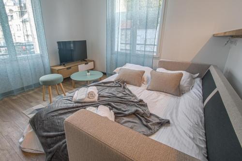 L’hébergement DOUCES NUITS CAENNAISES - Parking Privé inclus, centre ville se situe à Caen, à respectivement 1,5 km, 4,1 km et 4,4 km de ces lieux d’intérêt : Gare de Caen, Mémorial de Caen et Hippodrome de Caen. Cet hébergement est installé à 1,9 km de : Jardin des plantes de Caen. Vous pourrez profiter d'un parking privé disponible sur place et d'une connexion Wi-Fi gratuite. Cet appartement se compose de 1 chambre, d'un salon, d'une cuisine entièrement équipée avec un réfrigérateur et une machine à café, ainsi que de 1 salle de bains avec une douche et un sèche-cheveux. Des serviettes et du linge de lit sont à disposition. Vous séjournerez à respectivement 4,6 km et 6,9 km de ces lieux d’intérêt : Stade Michel-d'Ornano et Centre commercial Mondevillage. L'aéroport le plus proche (Aéroport de Caen-Carpiquet) est à 11 km. |