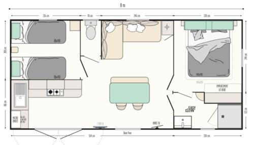 ![]() ![]() ![]() ![]() Featuring a private entrance, this air-conditioned mobile home consists of 1 living room, 2 separate bedrooms and 1 bathroom with a shower. In the well-equipped kitchenette, guests will find a stovetop, a refrigerator, kitchenware and a microwave. Boasting a terrace with garden views, this mobile home also provides soundproof walls and a TV. The unit offers 4 beds. |