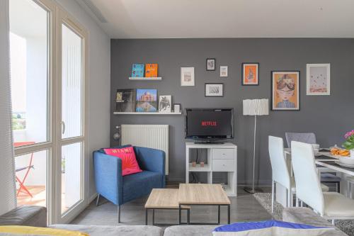 L’hébergement T3 lumineux pour 6 personnes proche métro Lyon se situe à Caluire-et-Cuire, à respectivement 4,7 km, 5,4 km et 6 km de ces lieux d’intérêt : Gare de Lyon-Part-Dieu, Musée Miniature et Cinéma et Basilique Notre-Dame de Fourvière. Il propose un balcon et une connexion Wi-Fi gratuite. Cet hébergement est installé à 4,2 km de : Musée des Beaux-Arts de Lyon. Il possède une terrasse et un parking privé gratuit. Cet appartement se compose de 2 chambres, d'un salon, d'une cuisine entièrement équipée avec un réfrigérateur et une machine à café, ainsi que de 1 salle de bains avec une baignoire et des articles de toilette gratuits. Des serviettes et du linge de lit sont à disposition. Vous séjournerez à respectivement 6,7 km et 7,6 km de ces lieux d’intérêt : Gare de Lyon-Perrache et Théâtre antique de Fourvière. L'aéroport le plus proche (Aéroport de Lyon - Saint-Exupéry) est à 30 km. |