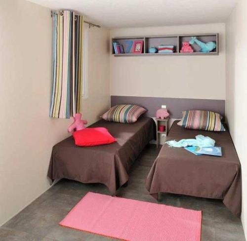 ![]() ![]() ![]() ![]() ![]() Featuring a private entrance, this air-conditioned mobile home comprises 2 bedrooms and 1 bathroom with a shower. Meals can be prepared in the kitchen, which comes with a refrigerator, kitchenware and a microwave. This mobile home provides heating, a TV and a terrace. The unit offers 4 beds. |