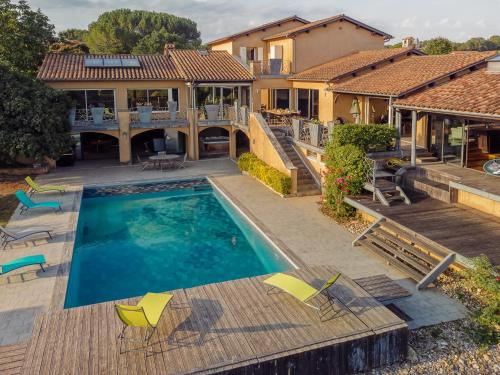 Situé à Capendac, l’hébergement La Villa Bleue, Luxe, Piscine et Spa offre une vue sur le jardin. Il propose un bar et une connexion Wi-Fi gratuite. Cette villa comprend une piscine privée, un jardin et un parking privé gratuit. Disposant d’une terrasse et offrant une vue sur la piscine, cette villa comprend 7 chambres, un salon, une télévision à écran plat par câble, une cuisine équipée, ainsi que 5 salles de bains avec une douche et un bain à remous. Cet hébergement met à votre disposition des serviettes et du linge de lit. L’espace bien-être comporte un bain à remous et un hammam. Cet établissement propose une piscine extérieure. L'aéroport le plus proche (Aéroport de Rodez - Aveyron) est à 51 km. |