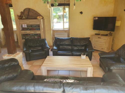 Situé à Capdrot et offrant une vue sur le jardin, l’hébergement Maison de campagne - 5 chambres possède un jardin ainsi qu’une piscine extérieure ouverte en saison. Cet hébergement met à votre disposition une terrasse, une table de ping-pong, un parking privé gratuit et une connexion Wi-Fi gratuite. Cette maison de vacances se compose de 5 chambres, d'un salon, d'une cuisine entièrement équipée avec un réfrigérateur et une machine à café, ainsi que de 1 salle de bains avec une douche et un sèche-cheveux. Des serviettes et du linge de lit sont à votre disposition. Vous séjournerez à respectivement 26 km et 36 km de ces lieux d’intérêt : Golf de Lolivarie et Gouffre de Proumeyssac. L'aéroport le plus proche (Aéroport Bergerac Dordogne Périgord) est à 45 km. |