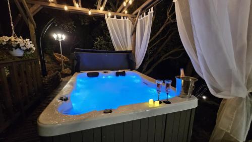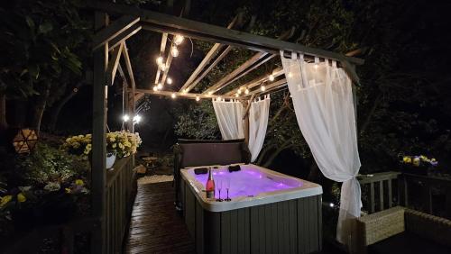 Chalet This chalet's standout feature is the hot tub. The chalet features 1 bedroom and 1 bathroom with a shower. The chalet offers a dining area, a sofa and garden views. The unit offers 1 bed.