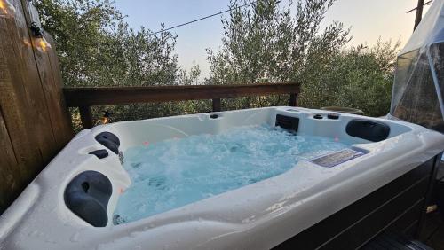 Mobile Home The hot tub is a top feature of this mobile home. This mobile home comes with 1 living room, 2 separate bedrooms and 1 bathroom with a shower. The mobile home has a tea and coffee maker, a dining area, a sofa as well as a terrace with garden views. The unit has 3 beds.