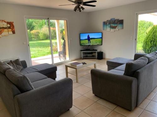 Situé à Carsac-de-Gurson, l’hébergement Villa de vacances offre une vue sur le jardin. Il comprend une piscine extérieure, un jardin, une terrasse et une connexion Wi-Fi gratuite. Cette maison de vacances possède un parking privé gratuit et se trouve dans une région où vous pourrez pratiquer des activités telles que la randonnée, la pêche et le canoë-kayak. Cette maison de vacances avec climatisation se compose de 4 chambres séparées, de 2 salles de bains avec un sèche-cheveux, ainsi que d’un salon. Cet hébergement propose une cuisine. Cet établissement propose un barbecue. Vous séjournerez à respectivement 39 km et 30 km de ces lieux d’intérêt : Gare de Bergerac et Grotte Célestine. L'aéroport le plus proche (Aéroport Bergerac Dordogne Périgord) est à 42 km. |