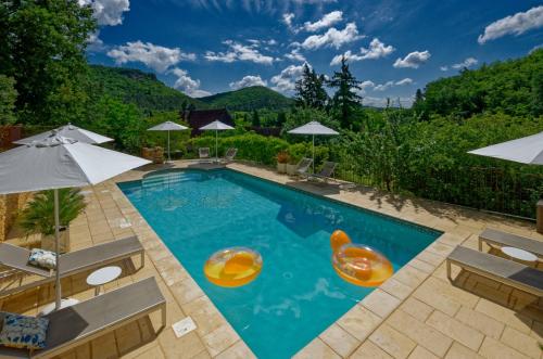 Situé à Castelnaud-la-Chapelle, l’hébergement La Tour de Cause offre une vue sur la montagne. Il possède une piscine extérieure ouverte en saison, un jardin, un salon commun et une connexion Wi-Fi gratuite. Cette chambre d'hôtes possède un parking privé gratuit et se trouve dans une région où vous pourrez pratiquer des activités telles que la randonnée, le vélo et le ping-pong. Des serviettes et du linge de lit sont à disposition. Un petit-déjeuner buffet, continental ou anglais/irlandais complet est servi sur place. Vous pourrez profiter d’une terrasse sur place. Vous séjournerez à respectivement 13 km et 41 km de ces lieux d’intérêt : Gare de Sarlat-la-Canéda et Grottes de Lascaux. L'aéroport le plus proche (Aéroport Brive Vallée de la Dordogne) est à 56 km. |