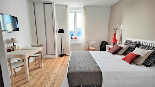 ![]() ![]() The studio offers a tea and coffee maker, a wardrobe, as well as a private bathroom featuring a shower and a hairdryer. The well-equipped kitchenette features a stovetop, a refrigerator, kitchenware and a microwave. This studio has parquet floors, heating, a flat-screen TV and city views. The unit offers 1 bed. |
