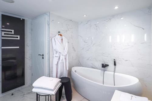 ![]() ![]() ![]() ![]() Featuring a private entrance, this air-conditioned suite is comprised of 1 living room, 2 separate bedrooms and 2 bathrooms with a walk-in shower and a bath. The spacious suite offers soundproof walls, a minibar, a tea and coffee maker, a flat-screen TV with streaming services, as well as an inner courtyard view. The unit offers 2 beds. |