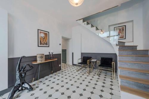 Situé à Chalifert, l’hébergement Luxury brand new art déco Disneyland met à votre disposition une connexion Wi-Fi gratuite et offre une vue sur le jardin. Cet hébergement est installé à 6,4 km de : Disneyland Paris. Il possède un jardin et un parking privé gratuit. Cette villa compte 5 chambres, une cuisine avec un réfrigérateur et un lave-vaisselle, une télévision à écran plat, un coin salon, ainsi que 3 salles de bains comportant une douche. Des serviettes et du linge de lit sont à disposition. Cet établissement 3 étoiles dispose d’un sauna et d’une terrasse. Vous séjournerez à respectivement 6,6 km et 38 km de ces lieux d’intérêt : Val d'Europe RER Station et Gare de Lyon. L'aéroport le plus proche (Aéroport de Paris - Roissy - Charles-de-Gaulle) est à 20 km. Un service de navette aéroport payant peut être assuré par l’établissement. |
