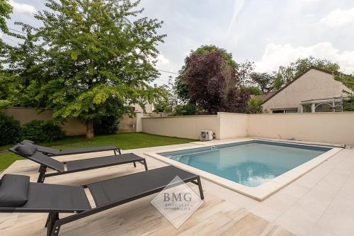 Situé à Chalifert, l’hébergement Villa Solaris Disneyland offre une vue sur le jardin. Il propose une piscine extérieure ouverte en saison et une connexion Wi-Fi gratuite. Cette villa possède une piscine privée, un jardin et un parking privé gratuit. Disposant d’une terrasse et offrant une vue sur la piscine, cette villa comprend 5 chambres, un salon, une télévision à écran plat, une cuisine équipée avec un réfrigérateur et un lave-vaisselle, ainsi que 4 salles de bains avec une douche. Des serviettes et du linge de lit sont disponibles. Un service de location de voitures est disponible sur place. Vous séjournerez à respectivement 4,9 km et 5 km de ces lieux d’intérêt : Disneyland Paris et Val d'Europe RER Station. L’établissement se situe à 21 km de l’aéroport le plus proche (Aéroport de Paris - Roissy - Charles-de-Gaulle) et propose un service de navette aéroport payant. |
