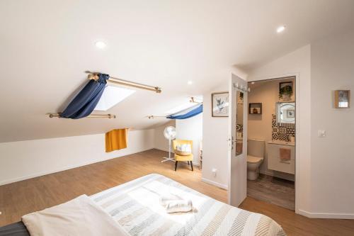 ![]() ![]() Ce studio est doté d'un coin repas, du chauffage ainsi que d'une salle de bains privative avec douche et sèche-cheveux. Vous pourrez préparer vos repas dans la cuisine bien équipée, munie de plaques de cuisson, d’un réfrigérateur, d’un micro-ondes et d’ustensiles. Ce studio dispose d'un plateau/bouilloire, d'un coin salon, de chocolats et d'une télévision à écran plat avec des services de streaming. Ce logement comprend 1 lit. |